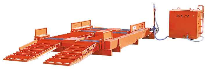 タイヤの前後輪へ同時に水を噴射して洗浄力を高めた、かさ上げ高さ250mmのタイプである。装置下の泥落土も排除しやすくなっている。通常の乾式よりも泥をきれいに落としたい場合に、活用されている。使用する水は真水を使用するので環境に害になることはない。