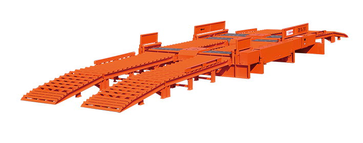 タイヤの前後輪を同時に洗浄することができる、かさ上げ高さ380mmにアップしたタイプである。装置下の泥落土を装置の横から排除しやすく作業効率が良い。