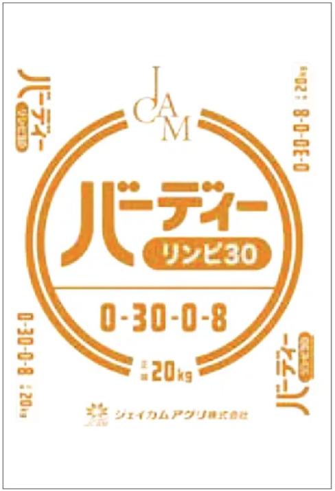 「バーディーリンピ」は、りん鉱石を分解して得られるりん酸液と、2種類の苦土肥料との反応造粒でつくられる。高温工程を必要としないため、省資源、省エネルギー型の肥料といえる。