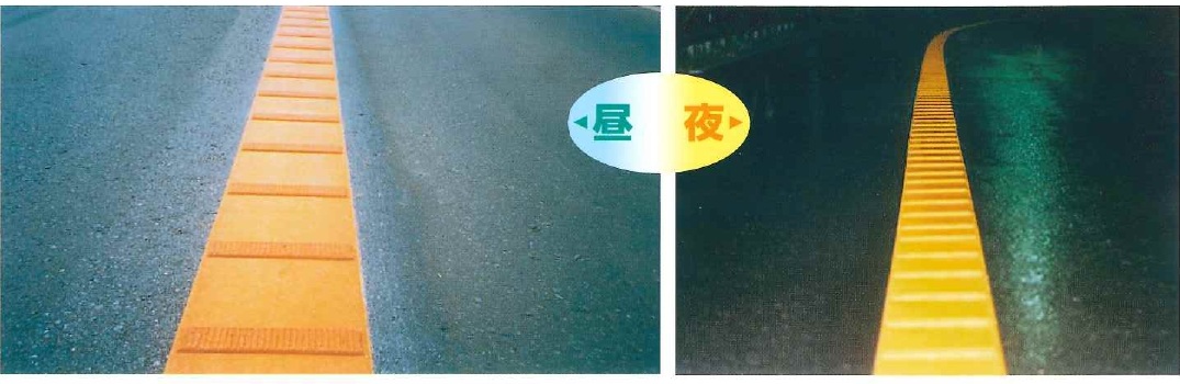 リブ式突起形状に筋をもたせた新形状で、ガラスビーズも保護するよう設計され、夜間視認性を向上させた。