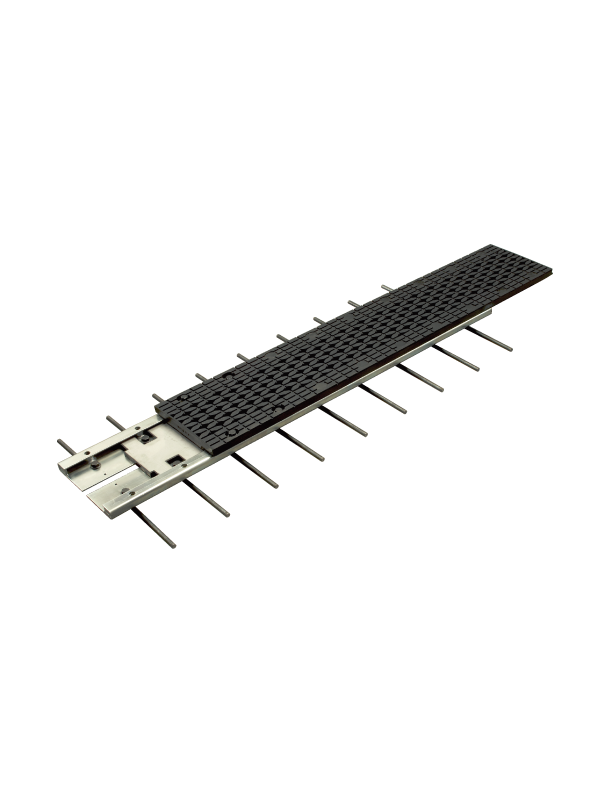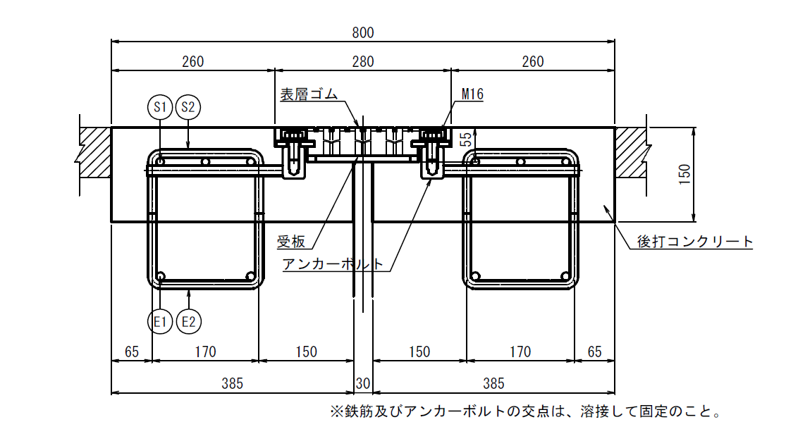 ・本体は表層ゴム、受板(荷重支持板)、受台が分離構造となっている荷重支持型である。