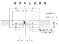 - ・工場で一体構造にした装置をアンカー筋に溶接し、後打コンクリートを打設する。