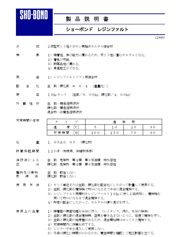 ショーボンド レジンファルトは、2液型可とう性エポキシ樹脂系モルタル結合材。
