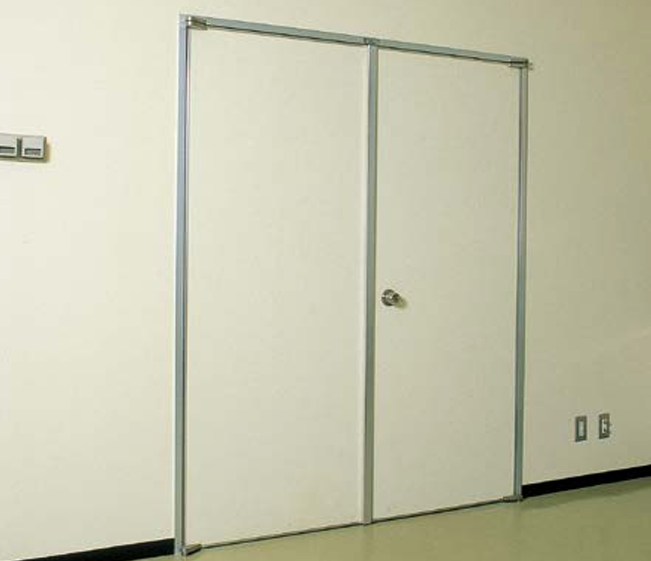 レイ-プロット・ドアは、放射線の透過・漏洩を完全に防止する放射線防護ドアである。 重量は鉛入りスチール製ドアに比べて約2/3で、お年寄りや子どもさんの力でも開閉が容易。 また、アルミ製規格品なので、耐久性、作業性、納り性に優れる。