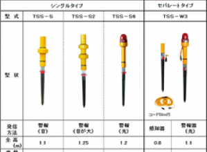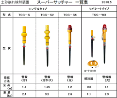 ・本製品の現場への設置は、1本の設置杭を監視対象となる不安定土塊等に打ち込み、その頭部に本体装置(傾き検知センサーと警報器を内蔵)を鉛直に取り付けることで完了する。従来技術はインバー線を張るために、杭2本の打ち込みが必要である。