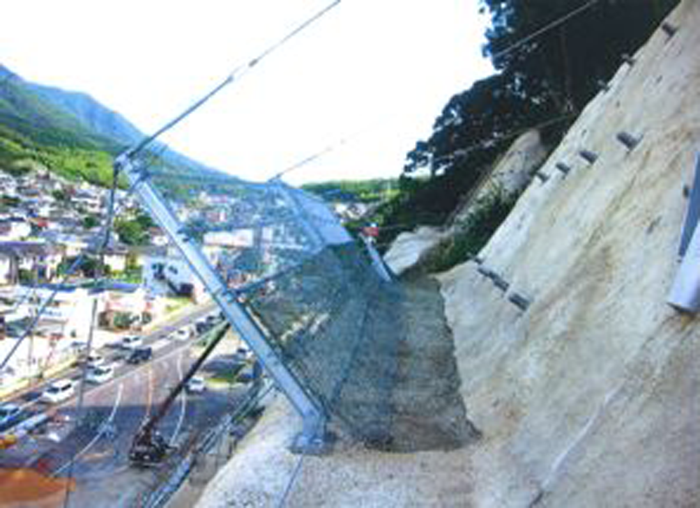 ▪山側のステーロープを標準化とし、落石エネルギーを吸収できる構造とした。