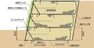 ・ジオテキスタイルで土質材料を拘束する構造であるため、中詰め材料として現地発生土を有効利用できる。