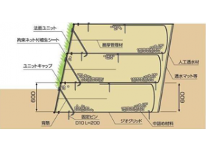 ・従来のジオテキスタイル補強土壁に比べて躯体の形状をスリム化できるため、経済性と施工性が向上する。