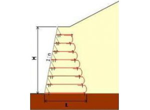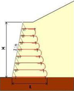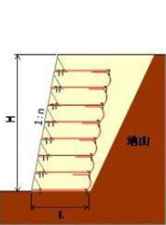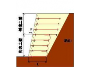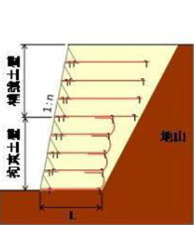 ・ジオテキスタイル補強土壁は、ジオテキスタイルと鉛直または鉛直に近い壁面材とを連結し、壁面材に作用する土圧とジオテキスタイルの引抜き抵抗力が釣り合いを保つことにより、土留壁として安定を保つ構造で、堅固な地山が近接し、ジオテキスタイルの敷設長を確保できない場合は、その適用が困難であった。