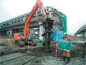 また、施工準備がバックホウに撹拌機を取り付けるだけなので迅速に作業が行える。
