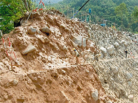 ・早期に固化するため、ラス金網を用いず直接斜面に吹付けることで侵食防止や斜面安定が図れる。