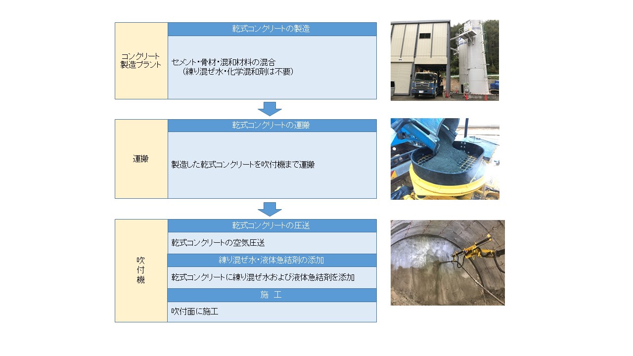 粉体急結剤と生コンクリートを使用する吹付コンクリート工法