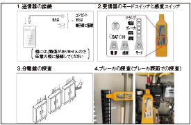 送信機を探査対象の回路の負荷側に接続した状態でブレーカを探査するため、省人化・省力化に繋がる。