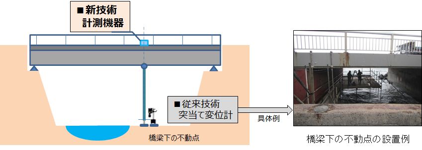 ・計測機器の設置作業を、橋梁下に突当て変位計を設置する作業から、橋面上に置くだけの作業に変えた。