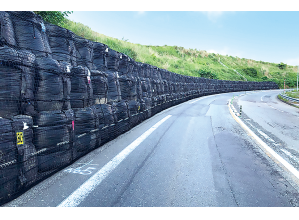 ・連結部を鋼製ピンに変え、ワイヤーを内蔵したことにより、車両衝突時には水だけではなくワイヤーでも衝撃吸収ができるようになり、樹脂製部分が破壊された後も連結されたワイヤーにより衝撃を吸収し、樹脂製仮設規制材の反対側への車両の進入を防ぐと共に、横転させることなく停止させることができ、安全性の向上が図れる。