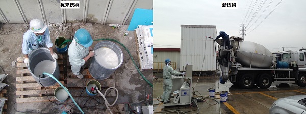 | 採用理由 | 1日の打設数量が多く、従来技術では作業員も作業量も多くなってしまうことから、本技術を使用して省人化・省力化を図るため。また、投入する材料の数量管理や計量した材料の全量投入が可能なことから、品質の安定が見込めるため。 |