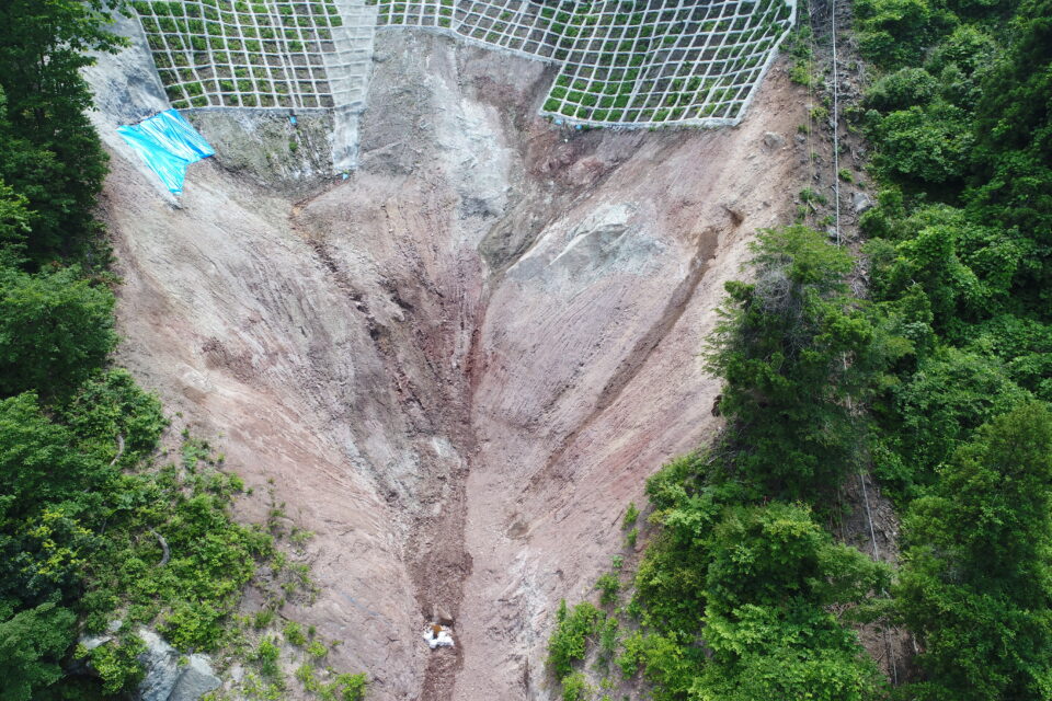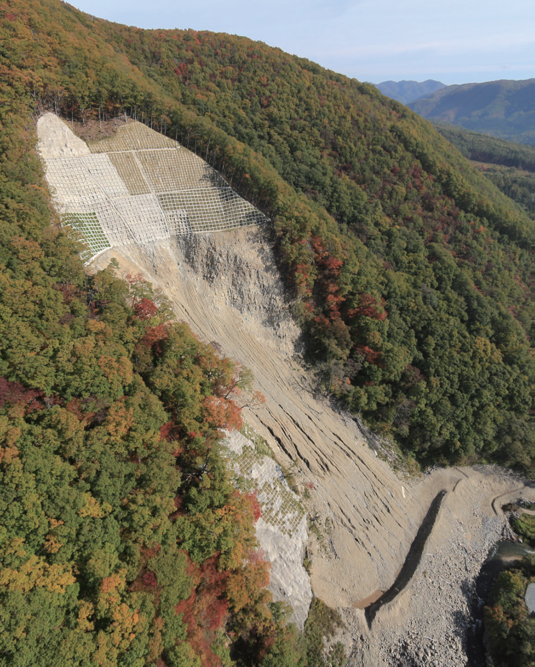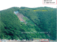 施工後の評価 | 3年間の継続したセパレートショット工法の事例。簡易法枠工はソイルクリートMタイプ1500を施工。 |