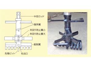 セメント系固化剤スラリーを用いる機械攪拌式深層混合処理工法で、独自形状の十字型共回り防止翼を有...