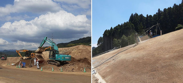 福岡県 宮若市役所 | 令和6年9月~令和6年12月 | 宮若さくらこども園法面補修工事 | 周辺環境に配慮した防草土吹付 |