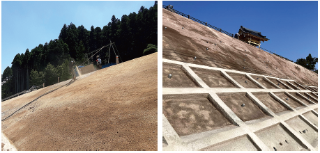 岡山県浅口市役所 | 令和6年6月~令和6年12月 | 市道駅前団地3号線法面崩壊対策工事 | 生活環境に配慮した防草土吹付 |