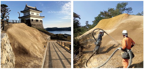 長崎県平戸市役所 | 令和 3年10月~令和4年2月 | 平戸城周辺通路等整備工事 | 自然斜面 景観に配慮した防草土吹付 |