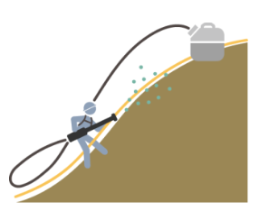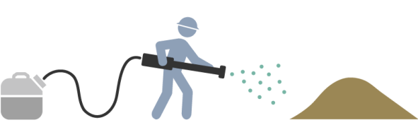 ・本技術は散布、乾燥後に効果を発揮するため雨天や降雪、地面が凍結している場合は施工不可である。(施工期間は乾燥を含めて約1日)