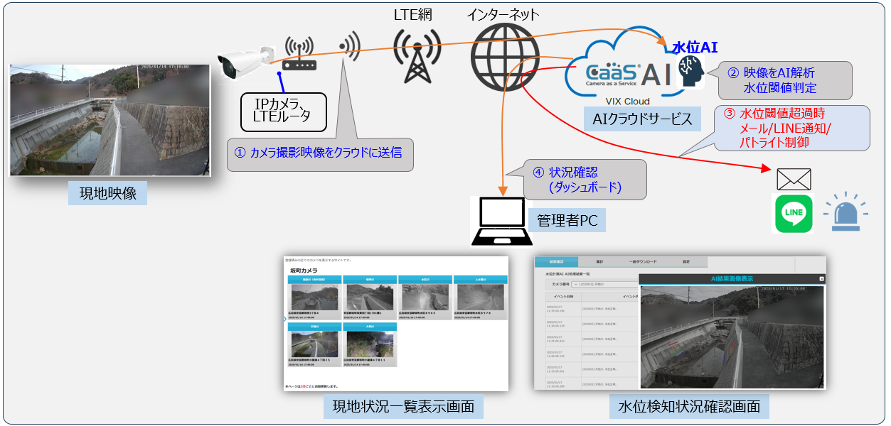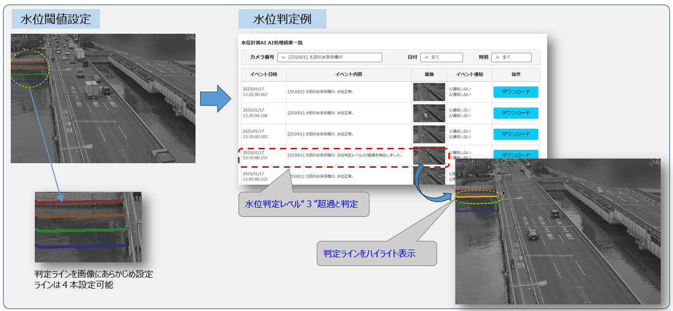 既存のカメラ映像をもとにAIを活用した水位状況判定が可能