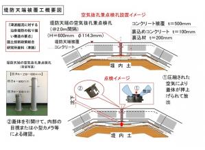 堤防天端被覆コンクリ-ト下面の水位上昇に伴い堤体内部の圧縮された空気をコンクリ-ト表面外に放出...