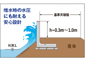 堤防の盛土の際に堤防天端の幅員を必要幅確保するための、パラペット構造の特殊堤をプレキャストブロ...