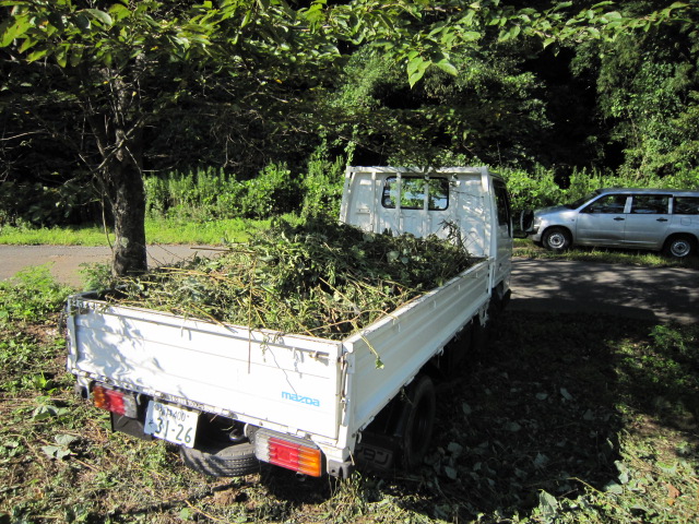 集草をダンプトラック等に積込、処分場に運搬する。