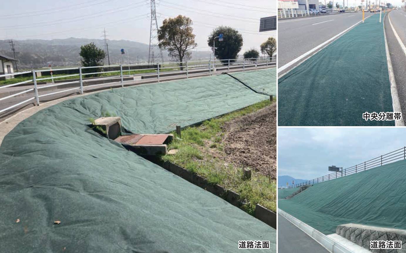 道路路肩や中央分離帯等、除草手間や規制の必要な場所で特に有効である。