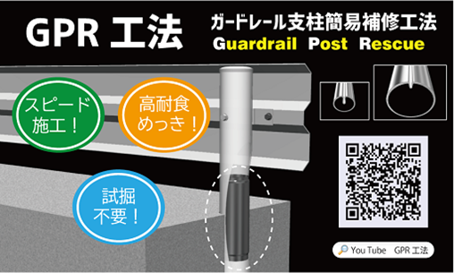 施工後の評価 | 支柱取替(試掘あり)に比べ、約2.5倍の施工量が確保された。費用についても、1本当りの施工金額で約1/2程度安価になっている。GPR工法は、中央分離帯の埋設ケーブルや電源ケーブル等の支障物件のある個所での補修方法として適しているものと考えられる。 |