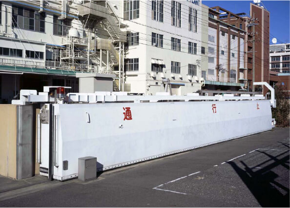 電源喪失時でも陸閘(横引きゲート)をガス圧駆動装置により自動開閉する技術