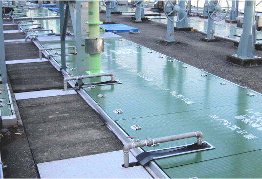 下水処理施設では防臭と槽内転落防止を目的とし、殆どの処理場に覆蓋が設置されてる。 これまでに培った加工技術を活かし、軽量で耐久性に優れ悪環境下においても腐食しないアルミ合金製の覆蓋を提供可能である。