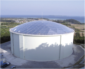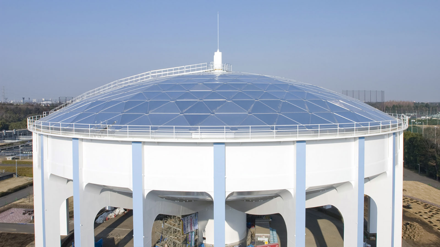 アルミドーム屋根はメンテナンスが容易であるため、ライフサイクルコストで非常に有効な工法である。 アルミ合金の高耐久性・軽量性を活かして、建設コストやメンテナンスコストを低減でき、工期も短縮できる屋根の架設工法である。 本工法は、水道用PCタンクのドーム屋根の他、油タンク、ファームポンドの屋根、さらに上下水道施設の矩形水槽の屋根にも適用できる。