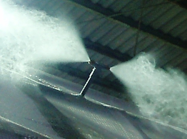 した温度・湿度の下限値を逸脱した時点でミスト噴霧が自動に起動するシステムで