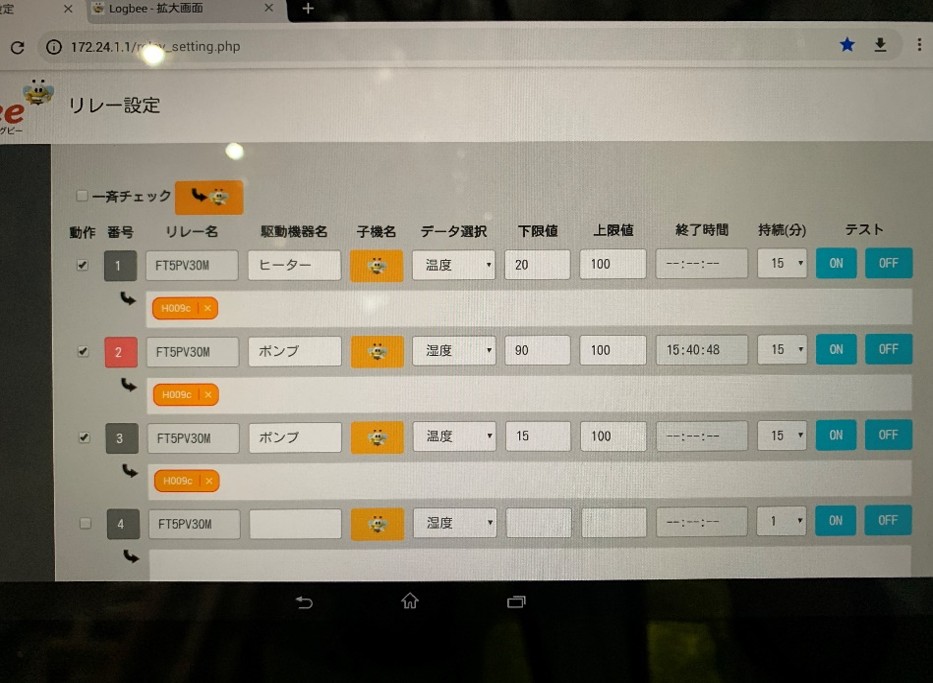 5、水温・温度・湿度を管理値パネルで上限・下限値の設定ができ管理することが可能。