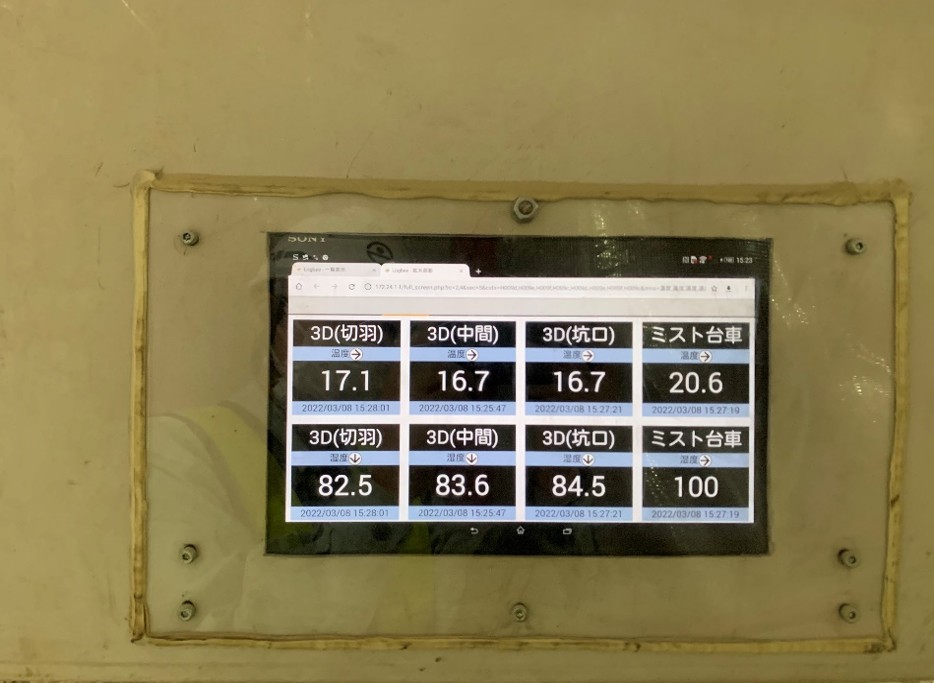 2、覆工コンクリート面とミスト台車との密閉空間内の温度・湿度を計測し、管理設定
