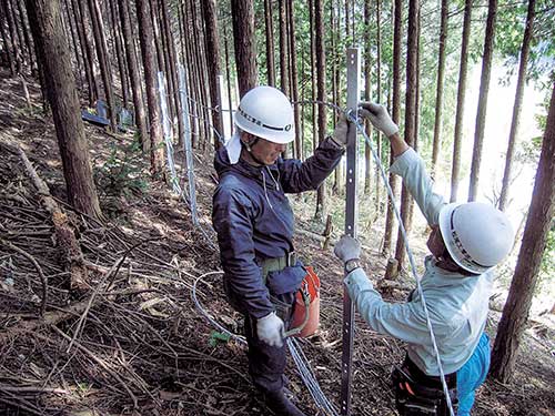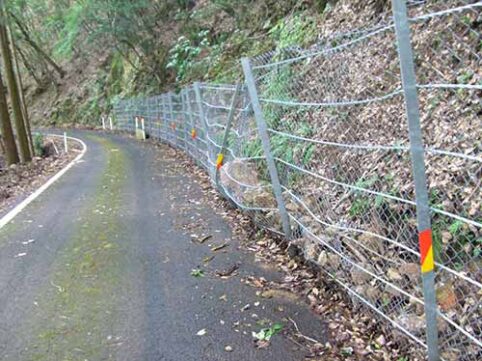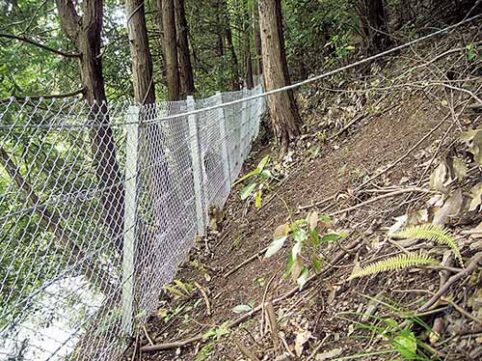 柔軟なワイヤロープと鋼製支柱により落石エネルギーを効率よく吸収する。...