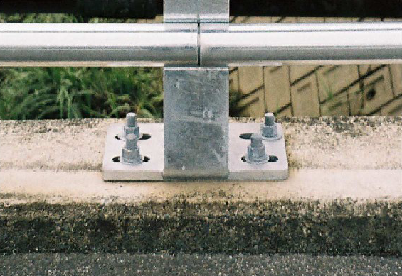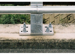 従来の防護柵は、既設地覆にアンカーボルト用の孔をあける場合、鉄筋に当たると鉄筋を切断するか、もしくは鉄筋を避けて防護柵支柱位置をずらさなければならないため、支柱間の基準ピッチを保てないという問題点があったが、新技術では支柱ベースを拡張式にし、ベースのアンカーボルト用孔を長孔にすることで、穿孔時の鉄筋損傷問題を解消した。