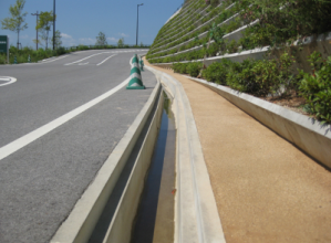 ・施工場所に均一に敷き均し、転圧、散水の簡単施工で防草効果を発揮する。