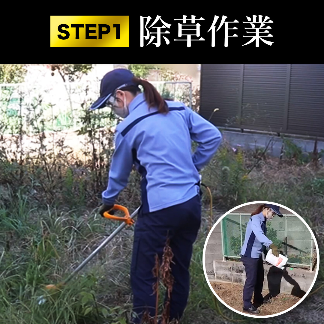 刈るだけでなく根元から完全に取り除き、仕上げに除草剤を撒く。 -