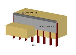 従来技術で車両用防護柵を設置する場合、限られた敷地内ではどうしても道路幅員の確保が難しい現場がある。プロテクトウォールLPはL形擁壁と防護柵基礎を一体化することにより、敷地境界に近い位置に車両用防護柵を設置することを可能とした。また、T形梁構造を採用することにより、衝突荷重に対して安全で経済的な断面を実現した。