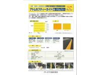 アトムセフティーガイドは耐候性に優れた特殊熱可塑性樹脂を採用し、特殊骨材を配合しているため耐摩耗性に優れるとともに、安心して雨天時に歩行できるように配慮されている。また、線状(誘導)標示を連続成型する施工方式を採用しているので、短期間での施工が可能となった視覚障がい者誘導用標示材である。