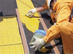 ・多少の路面不陸があっても、柔軟性を有する成形シートのため、容易に施工することが可能である。