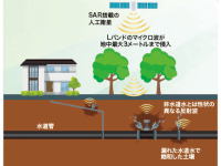 人工衛星による観測データを解析し、広域での漏水調査対象箇所の抽出を行う技術で、漏水可能性の高い配管部のみに漏水調査対象を絞り込めるため、現地調査を大幅に効率化できる。漏水リスク予測とは異なり、実際に衛星によりセンシングされた地中の水濡れ位置のデータの提供が可能。