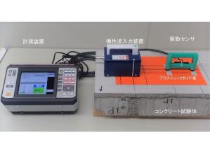 電磁力でコンクリート中の鉄筋やコンクリート表面に貼り付けた金属板を振動させて、弾性波の伝搬速度からコンクリートの強度を推定する装置。