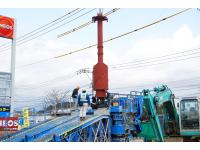 ・専用のアタッチメントを使用し、全周回転掘削機を撤去せずともダウンザホールハンマをセットすることができる技術。 ・ダウンザホールハンマ施工により岩盤を破砕し、先端地盤の応力を開放することで掘削...