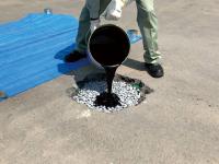 常温施工が可能なグースアスファルト舗装用の補修材。 施工が容易で小規模から行えるため、グースアスファルト舗装の部分的な補修に適している。 化学反応硬化型の材料であり、バインダを単粒度骨材の...