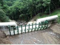既設コンクリート堰堤に後付けで設置する張出型鋼製流木捕捉工で、あと施工アンカーで上流側に鋼製スリットを取り付け、不透過型堰堤の流木捕捉機能を向上させることが可能。